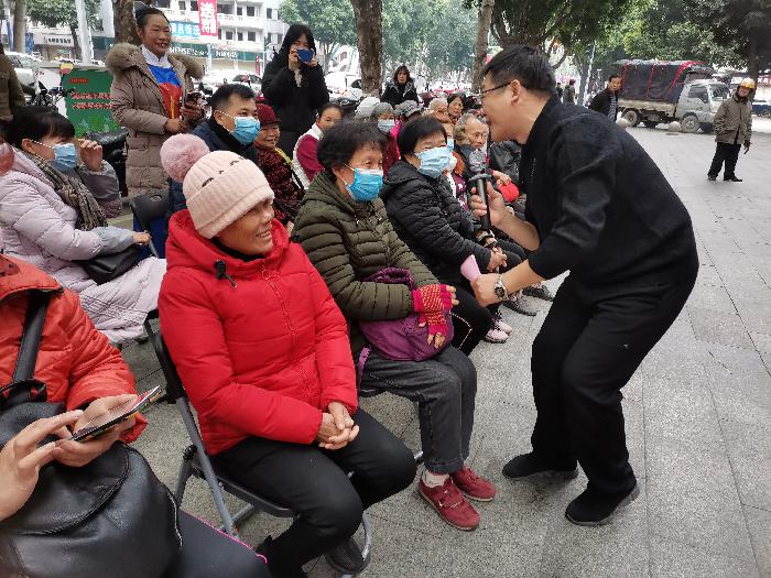 12月28日,自治区委员会宣传部、自治区文化和旅游厅主办,角嘴街道办事处、潘塘社区、新兴社区协办的“送文艺精品下基层”惠民演出在广汇电器城小广场举行。活动邀请了梧州市万秀区“一社区一心理咨询师”项目的资深心理咨询师廖开伟为现场市民普及心理健康知识,活动中进行了互动体验有奖问答小游戏,问答题目贴近生活,充分调动了观众的积极性。
