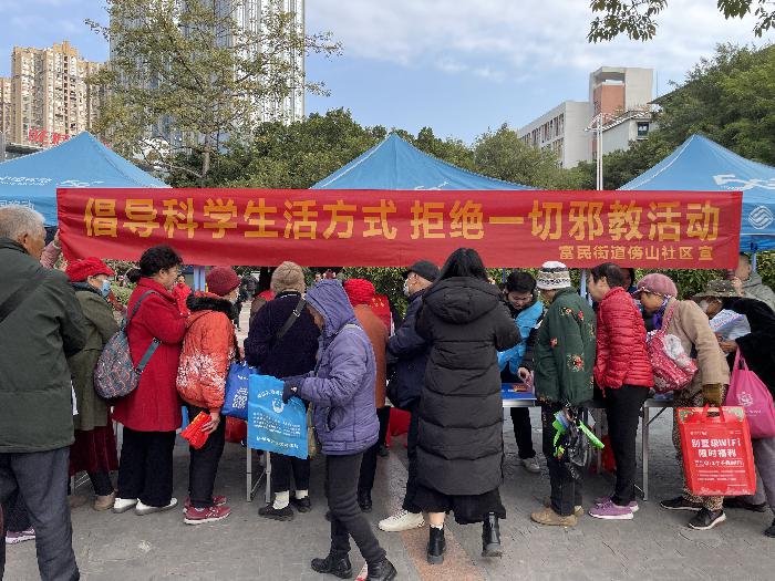 当天,富民街道还组织网格员、志愿者走街串巷,面对面向居民讲解邪教的危害及识别方法,使反邪教知识真正走进千家万户。