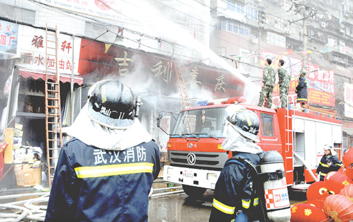 据武汉市公安消防支队介绍,火灾发生后,消防部门组织了79辆防消车,公安、消防官兵800多名迅速赶赴现场施救,中午12时左右明火被扑灭。由于起火点堆有大量塑料装饰品,起火大楼门前巷道狭窄,给施救带来一定难度。