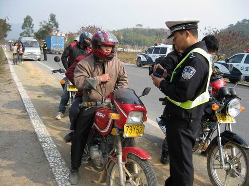 为确保村民在春节前后的出行安全,万秀交警大队还每天派出一组民警联同旺甫中队民警,在旺甫路段开展摩托车交通违法专项整治,对无证驾驶、酒后驾驶、驾驶无号牌车辆、驾驶两轮摩托车不戴安全头盔、乱停乱放等严重交通违法行为进行整治。