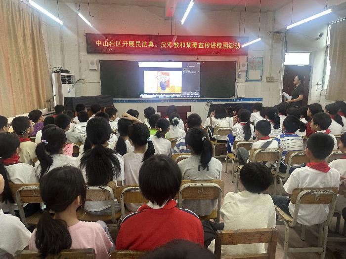 当天,社区网格员开展反邪教知识科普,详细介绍了什么是邪教、邪教与宗教的区别等,并通过剖析邪教组织蛊惑人心、残害生命的真实案例,让同学们认清邪教的本质与危害,提高识邪、防邪、拒邪的能力。同时,网格员向同学们发放精心准备的《中华人民共和国民法典》、反邪教和禁毒宣传资料。宣传手册中丰富的漫画、简洁易懂的文字,让知识变得生动有趣,吸引同学们认真翻阅学习。网格员们耐心解答同学们提出的问题,鼓励大家将学到的知识传递给家人和朋友,共同营造全民学法的良好氛围。