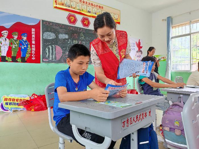 为进一步增强广大青少年特别是在校学生的反邪教意识,严防邪教向校园渗透,净化成长环境,打造“无邪校园”,防止邪教组织将魔爪伸向青少年。6月10日,梧州市万秀区夏郢镇平安法治办携手梧州市万秀区夏郢司法所,以“守护青少年成长之路”主题活动为契机,走进梧州市民智小学开展反邪教宣传。