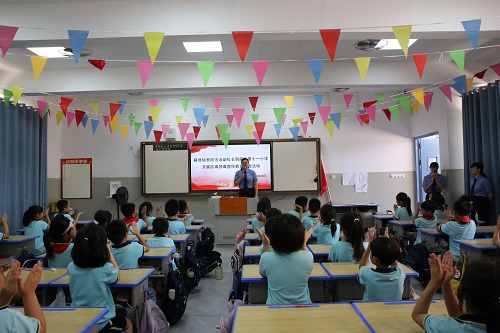 “毒品是指鸦片、海洛因、甲基苯丙胺(冰毒)、吗啡、大麻、可卡因以及国务院规定管制的其他能够使人形成严重依赖性的麻醉品和药品。”课堂上,黄洁华以通俗易懂的语言,结合真实案例,揭开了毒品的狰狞面目。从传统毒品的巨大危害到新型伪装毒品的隐秘陷阱,从成瘾机理的剖析到身心摧残的惨痛代价,每一段讲述都如警钟长鸣,在孩子们心中激起层层涟漪。课堂不再是单向灌输,孩子们争先恐后地举手提问——“像邮票一样的毒品真的存在吗?”“我们应该如何辨别身边的危险,预防毒品?”黄洁华耐心地解答,用法律知识为孩子们拨开迷雾,在幼小心灵中刻下“珍爱生命,远离毒品”的深刻烙印。