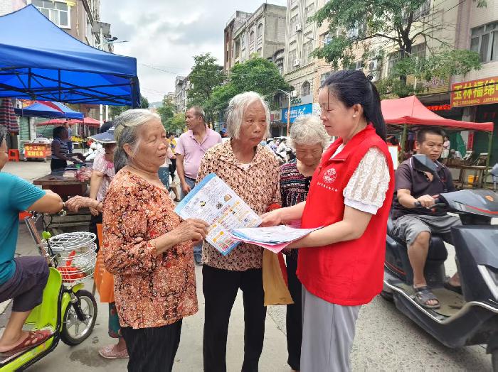 为进一步提升群众反邪教能力,让群众认清邪教“伪科学”“假慈悲”的真面目,增强对邪教渗透的识别力与免疫力,6月11日,梧州岑溪市归义镇在新市场文化站“摆摊设点”开展法治宣传活动,为群众送上法治知识“大礼包”。
