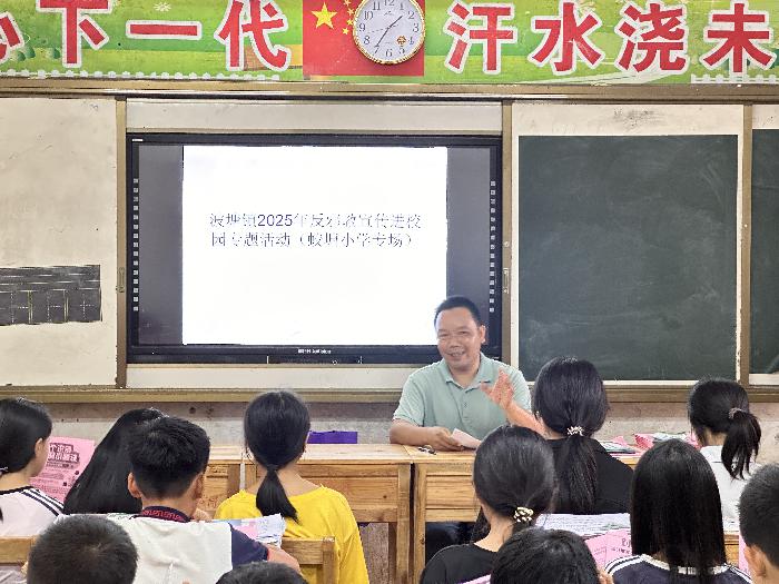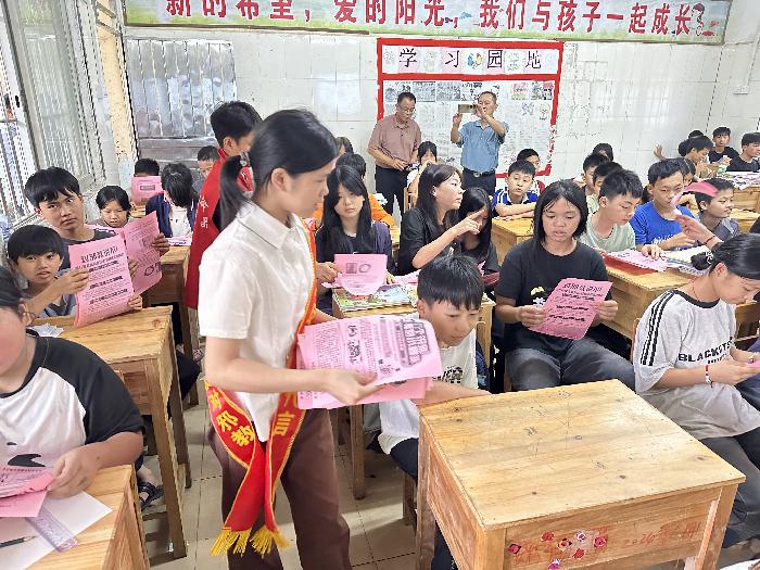6月18日,梧州岑溪市波塘镇组织平安法治办、禁毒办到波塘镇蛟塘中心小学开展禁毒、反邪教宣传进校园活动,为师生们带来了一场内容丰富、形式多样的宣传教育活动。