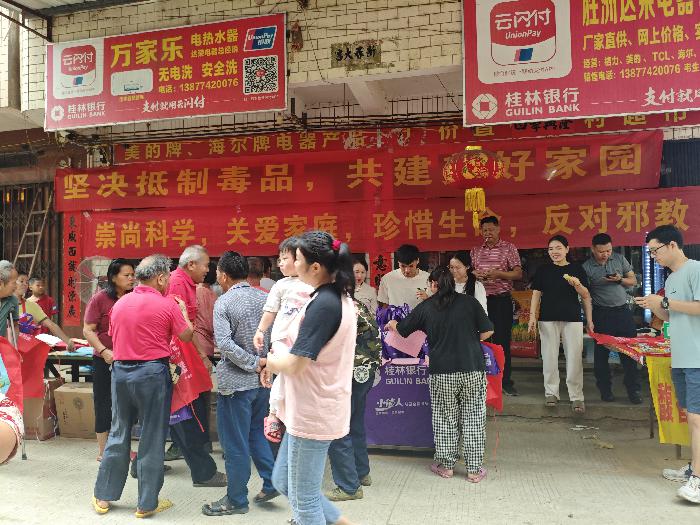 6月26日,适逢梧州市龙圩区大坡镇胜洲街传统圩日,大坡镇巧妙抓住这一人流高峰时机,在喧闹的集市中精心布设反邪教宣传阵地,点燃法治烟火气,开展主题为“全民反邪,共铸平安”的反邪教集中宣传活动,为熙攘的圩日注入了一股清新的法治力量。