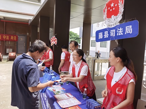7月16日,在藤县县委政法委组织下,藤县司法局宣传专班联合县公安局反诈中心工作人员走进这座绿色工厂,开展“法护民企”普法宣传活动。