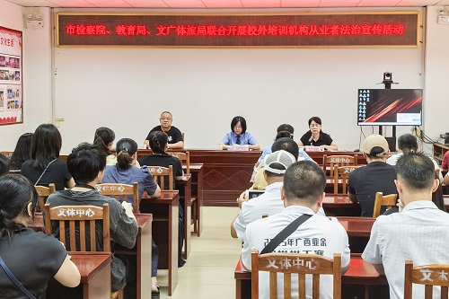 校外培训机构是未成年人成长教育的重要延伸领域,为进一步规范校外培训市场秩序,切实筑牢未成年人保护屏障,9月17日,岑溪市检察院联合市教育局、市文广体旅局组织辖区内校外培训机构负责人开展强制报告制度与从业禁止制度法治宣传,为未成年人健康成长撑起“法治保护伞”,构建起广覆盖、多维度的普法网络。