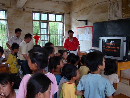 图为该县梨埠镇凤仪小学师生在观看铁路护路宣传片