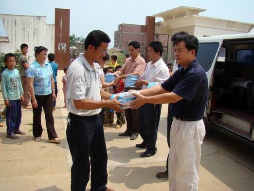 图为该县铁路护路办向龙圩镇四合小学赠送铁路护路宣传资料