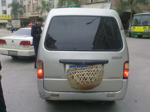 当日上午10时许,城区中队中队长董志坚带领着2名协管员在县城巡逻检查时,发现由东向西行驶的一辆银色五菱面包车的车牌号码被一个装载着家禽的小笼子遮挡着,董志坚中队长遂示意其接受检查。民警把装载家禽的小笼子拨开,为桂D·QQ0××故意遮挡号牌车辆,驾驶员张某下车后称自己从广东江门前来办事的,装载家禽的小笼子确实是自己挂上去的,就是怕因对路况不熟悉恐在有交通违法行为时被抓拍。苍梧交警提醒广大外来的驾驶员,前往目的地应提前熟悉路况,以方便遵守交法、安全行驶。