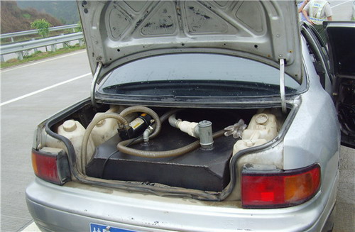小轿车内藏乾坤 轿车变身“油罐车”