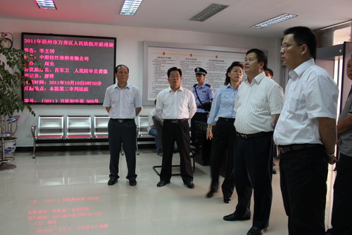 黎书记察看了万秀院诉讼服务大厅、科技法庭等场所,并认真听取了万秀法院院长黎家伟的汇报,对万秀法院立案信访窗口及信息化建设的工作成绩给予了充分肯定,要求进一步拓展立案信访窗口功能,完善诉调联动机制,加强人民法院指导人民调解、协助行政调解、协助行业调解工作,抓好源头稳控,化解社会矛盾;加快法院的信息化建设进程,推动审判工作向前发展。随后,黎书记就即将举办的宝石节的安全保卫工作作了具体指示,要求法院明确任务,提前介入,积极行动,认真部署,以良好的精神状态,强烈的使命感责任感全力以赴投入到宝石节安全保卫工作中去,确保社会安全稳定。