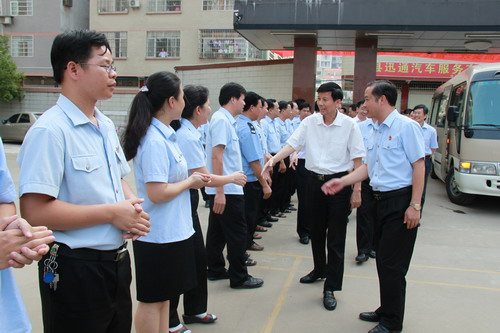区高院罗殿龙院长一行与该院全体干警合影后,参观了该院科技法庭、创先争优宣传专栏、法院文化室、立案信访服务大厅。藤县法院石忠贵院长汇报了该院在创先争优、创新社会管理、服务大局、法院文化建设等方面的工作情况,以及通过建立诉讼联络员制度、诉前调解方式开展和谐司法在基层、创建无诉村屯(社区)活动取得的业绩。