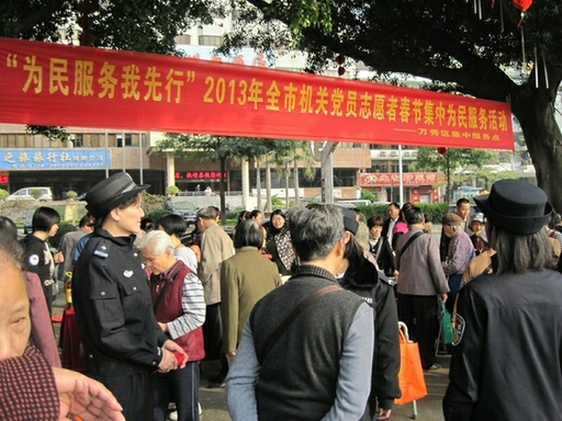 石鼓派出所为深入贯彻落实党的十八大精神,弘扬“奉献、友爱、互助、进步”的志愿精神,组织动员所内党员民警积极发挥公安队伍战斗堡垒作用和先锋带头作用,加入到2月2日全市党员志愿者集中服务活动当中,向群众开展了送平安志愿服务。
