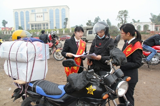 春节将至,大批在外务工的农民工即将返乡,为有效帮助、教育和引导返乡农民工能够顺利返乡欢度春节,维护辖区社会和谐稳定,2月4日下午, 在藤县法院院党总支部书记、副院长潘家绪亲自带领下,该院10多名党员志愿者冒雨前往藤县潭东收费站附近的返乡农民工服务点开展返乡农民工反邪教法制宣活动。