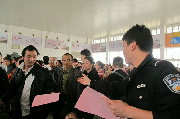 新春佳节将至,为防止新春返程客流高峰期间盗窃、抢夺、诈骗等案件的发生,提高广大旅客乘车出行的安全防范意识和自我保护能力,使人民群众文明出行,平安归家,幸福、快乐地度过春节,2月6日上午,兴龙派出所联合铁路派出所民警到火车站,开展“打倒票、防盗抢、防火患”的安全防范宣传活动,向旅客发放防范盗窃、诈骗宣传单,共创平安旅程。