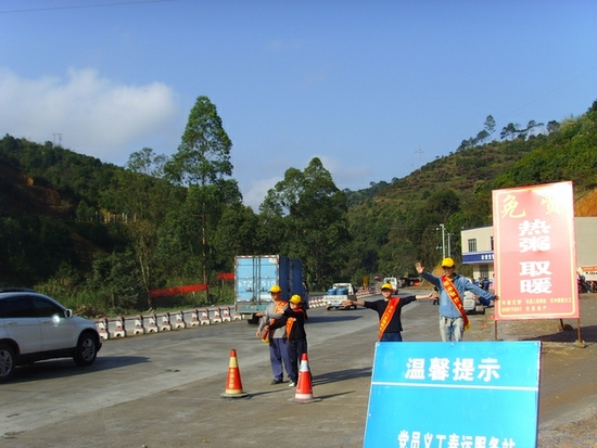 这时,摩托车大军正浩浩荡荡地从广东方向驶来,车手们戴着头盔,身着厚外套,车后还有堆积如山的行李。“师傅辛苦了,请进服务站休息,有免费的热姜糖水、八宝粥。。。。。。”来自岑溪中学高一年级的女同学邓艳霞和5名志愿者早冬阳下正忙着指挥摩托大军进服务区休息,而交警指挥车辆停好,又为他们的车辆贴上反光车贴,以确保安全。“我们班上有8名同学也参加春运服务志愿者,早上8时一直到下午2时,一直喊要几千声,这样下来喉咙都冒烟了。”
