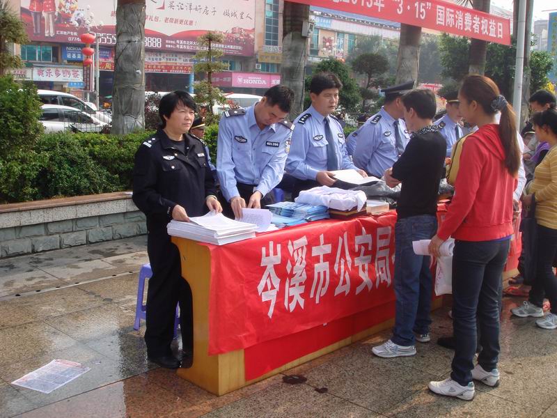为贯彻党的十八大精神,营造良好的市场环境,根据公安部、公安厅关于在全国开展打假专项行动的决策部署,进一步加大宣传打假力度,岑溪市公安局经侦大队联合工商、烟草、药监等部门,于3月13日上午,在岑溪市人民广场举行打击销售假冒伪劣商品大型宣传活动。