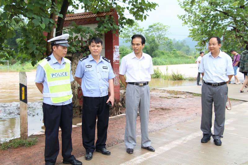 同一天,苍梧县狮寨镇思丰村发生山体滑坡,有房屋倒塌,有人被掩埋,而通往狮寨镇的公路多处塌方,交通中断,救援车辆无法进入。苍梧交警大队立即派出警力向狮寨镇出发。由于该路段多处塌方,其中有一处出现20多米长的山体滑坡,救援车辆和救援物资无法及时进入抢险现场,执勤民警和协警一边步行疏导车辆,一边有序地指挥救援车辆慢慢通过,尽管天气闷热、蚊叮虫咬、睡意来袭,但是为了乡亲们能尽快获得救援,民警和协警们打起精神,终于让救援车辆顺利进入了救灾现场,为救援工作赢得了时间。与此同时,县道702线京南路段多处发生塌方,公路、桥梁被洪水冲毁,有的路段被掏空,为确保安全,大队派出民警在该路段24小时巡逻,排查险情并及时上报,同时设立警示标志,不厌其烦地劝导车辆和行人绕道通行,当顺利完成这些工作的时候,民警和协警们足足连续奋战了24小时。