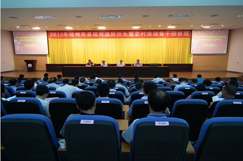 本次培训班是梧州市司法局和梧州学院创新社会管理,开展合作共建以来举办的第一期培训班,邀请了梧州学院老师、市检察院检察官、市中级人民法院法官及市法律援助中心负责人为培训人员进行授课。此次培训学习内容充实,教学方式灵活多样,不仅有理论知识讲座、学员工作经验交流,而且还组织大家到梧州监狱开展警示教育。