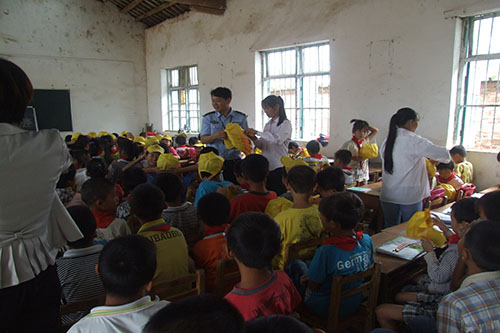 在进行了安全教育后,大队民警亲自为可爱的小学生们戴上了醒目小黄帽,活动启动当日,共计派发了1000多顶小黄帽,目前还有5000多定正在按计划派发到全县的各个中小学校。希望通过这次活动,进一步提高同学们的交通安全意识,让学生们“头戴小黄帽,安全万里行”。