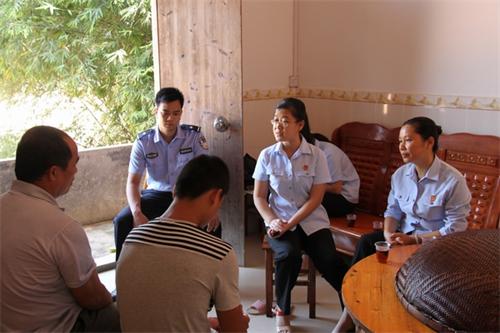 藤县法院刑事审判庭妇女儿童维权岗的女法官们正在耐心教育失足少年