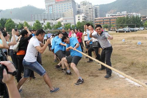 在小组赛中,拔河队员们个个摩掌擦拳、扎稳下盘,在场边拉拉队员的加油鼓劲下,藤县法院代表队轻松以2:0战胜梧州市中院代表队,赢得拔河首个胜利。
