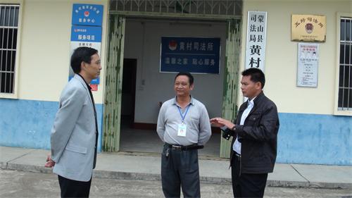 在察看黄村司法所时,蒙局长对莫运福所长获全国“人民满意公务员”推荐对象的公示表示祝贺,充分肯定了莫所长对司法行政工作的贡献,期望继续在司法行政系统做榜样。蒙局长还对黄村司法所社区矫正工作信息管理系统平台进行了操作,操作后要求司法所工作人员要严格执行各项教育管理制度,定期查看信息工作系统,对矫正对象及帮教人员的动态情况定期进行分析,实行人性化管理,继续保持无脱管、无漏管、无重新犯罪的“三无”目标。