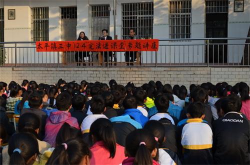 连日来,藤县法院太平法庭法官先后为平福中学、古龙一中等学校的3000余名学生上法制安全教育课,受到学校师生和广大家长的一致好评。12月4日上午,该庭黄醒勋庭长又应邀来到太平三中开展“宪法进课堂”法制宣传活动,受到1400余名中学生的热烈欢迎。