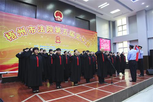 梧州市中院十分重视法院文化建设,从2007年开始,已经连续举办五届“法院文化周”。每届“法院文化周”的主题鲜明,内容丰富,形式多样,影响积极,有力促进了全市法院文化建设,展现了人民法官的良好职业形象,提高了人民法院的严格执法能力,提升了司法公信力。